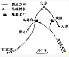 某品牌企业在京津冀地区建有饮用瓶装水厂。读下图,回答下列各题。