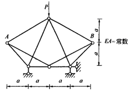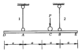 结构如图所示,载荷P可在横梁(刚性杆)DE上自由移动。杆1和杆2的横截面积均为A,许用应力均为[σ](拉、压相同)。求载荷P的最大许可值。()