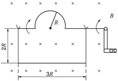 用一根硬导线弯成半径为R的半圆形,将其置于磁感应强度为B的均匀磁场中,以频率f旋转,如图所示,这个导体回路中产生的感应电动势ε等于()。