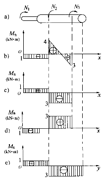 阶梯轴如图a)所示,已知轮1、2、3所传递的功率分别为N