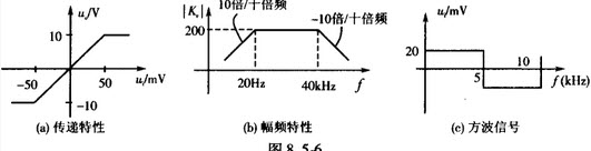 放大器的传递特性曲线及频率特性分别如图8.5-6a和图8.5-6B所示。若方波信号如图8.5-6C作为放大器的输入信号,则输出波形()。