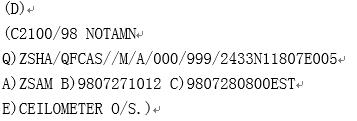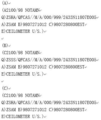 厦门机场,自98年7月27日10时12分预计至98年7月28日8时,云高测量设备不工作,发布C2100/98。()