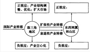 衰退性产业转移主要是指在本地不再具有比较优势产业的向外转移。读"广东产业转移效应理论模型图",回答问题。