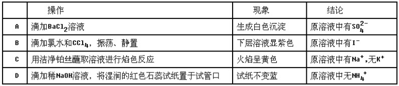向四支试管中分别加入少量不同的无色溶液进行如下操作,结论正确的是()。