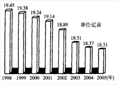 2007年6月25日是第十七个全国"土地日",宣传主题是"节约集约用地,坚守耕地红线"。读"1998-2005年全国耕地面积变化图",完成问题。