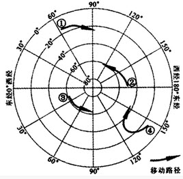 下图示意北半球夏季4个气旋的移动路径。读图,回答下列各题。