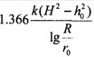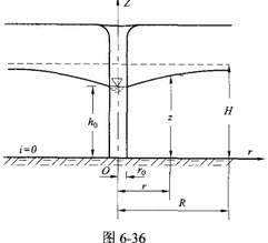 图6-36中,普通潜水井(完全井),半径为r0影响区半径为R,未受影区水位为H,水井内水位h0,土壤渗流系数为k,该单井流量为()。