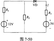电路如图7-50所示,已知R1=R2=2kΩ,R3=3kΩ,VD为理想二极管,电流I为()mA。