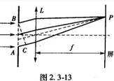 一束波长为A的平行单色光垂直入射到一单缝AB上,装置如图2.3-13。在屏幕上形成衍射图样,如果P是中央亮纹一侧第一个暗纹所在的位置,则AC的长度是()。