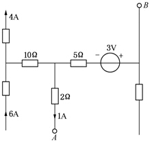 如下图中所示的是某复杂电路的一部分,A、B两点间的电位差为()V。