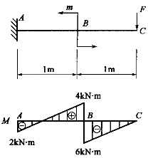 悬臂梁的弯矩如图所示,根据梁的弯矩图,梁上的载荷F、m的值应是:()