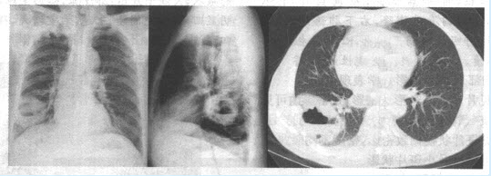 患者,男,45岁。受凉后寒战、高热1周,咳大量脓痰。X线平片如下图所示。
