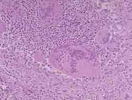 D:滤泡破坏、出现巨细胞