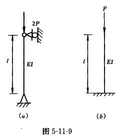 图5-11-9所示两根细长压杆,L、EI相同。a)杆的稳定安全系数n