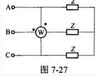 如图7-27所示三相对称三线制电路中,线电压为380V,且各负载Z=R=22Ω。此时功率表读数为()W。