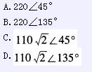 已知电源电动势E(t)=220cos(314t+45°)V,代表它的有效值相量是()V。