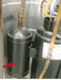 图中空调器(冷气机)的制冷系统中,有两条铜管连接压缩机,系统运作时一条铜管触感较凉,一条较热,触感较凉的铜管连接一容器,下列哪一项为此容器之主要功用()