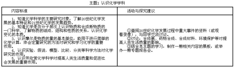 下面是高中化学课程标准中“内容标准”的节选。
