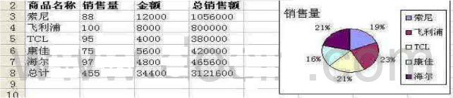 某公司2008年10月销售统计情况如下图所示,用饼图显示各品牌销售量的比例,与此饼图对应的数据源范围以及数据产生的系列是()。