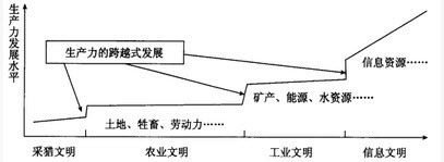 下图为"人类文明不同发展阶段的经济资源及生产力发展水平示意图",读图回答问题。