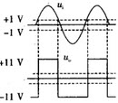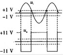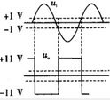 运算放大器应用电路如图所示,设其输出饱和电压为±11V,输入电压为正弦信号,则输出电压uo的波形为()。