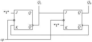 由JK触发器组成的应用电路如图所示,设触发器的初值都为0,经分析可知这是一个()。