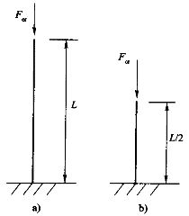 一端固定一端自由的细长(大柔度)压杆,长为L(如图a)所示,当杆的长度减小一半时(如图b)所示,其临界荷载F