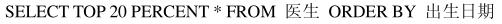 显示占总人数20%的较年轻的医生的记录,相应查询语句如下: