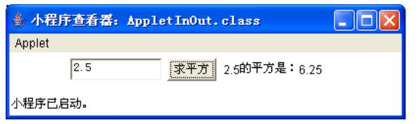 编写程序,程序运行界面如下图所示。在本程序中,生成了一个文本框in用于输入,一个标签out用于输出,一个按钮btn用于触发命令。在Applet的初始化方法中,设定流式布局(FlowLayout)。按图示结果编写程序。