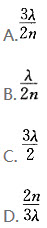 波长为λ的单色光垂直照射到置于空气中的玻璃劈尖上,玻璃的折射率为n,则第三级暗条纹处的玻璃厚度为:()