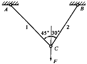 图示结构的两杆面积和材料相同,在铅直力F作用下,拉伸正应力最先达到许用应力的杆是:()
