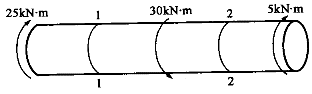 如图所示,直杆受扭转力偶作用,在截面1—1和2—2处的扭矩为:()