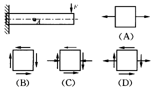 对于图示悬臂梁中,A点的应力状态有下列四种答案:()