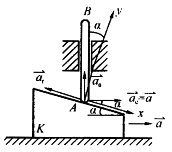 沿水平面向右运动,从而带动推杆AB在铅直槽内运动。为求AB杆的加速度,选AB杆上的A点为动点,动坐标固结在楔形块K上,静坐标固结在地面上,根据牵连运动为平动时的加速度合成定理,下列答案中哪个是正确的?()