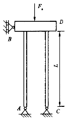 两根完全相同的细长(大柔度)压杆AB和CD如图所示,杆的下端为固定铰链约束,上端与刚性水平杆固结。两杆的弯曲刚度均为EI,其临界载荷F