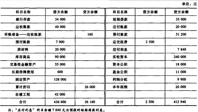 注:"应付利息"科目余额7840元为预提的短期借款利息。