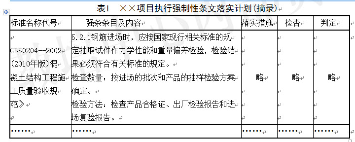 背景材料: 某多层钢筋混凝土现浇框架结构施工,抗震等级为三级,主要结构钢材品种为HPB300.HRB400E,柱筋接长采用电渣压力焊。 根据本项目情况.标准员编制了执行工程建设标准强制性条文落实计划表,见表1。