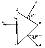 图示三角形单元体,已知ab、ca两斜面上的正应力为σ,剪应力为零。在竖直面bc上有:()