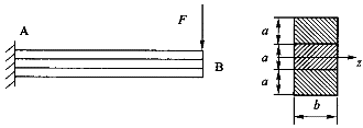 悬臂梁AB由三根相同的矩形截面直杆胶合而成,材料的许可应力为[σ],若胶合面开裂,假设开裂后三根杆的挠曲线相同,接触面之间无摩擦力,则开裂后的梁承载能力是原来的:()