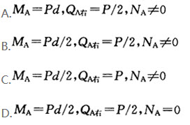 图示结构中,梁式杆上A点右截面的内力(绝对值)为:()