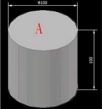 按如图所示创建圆柱实体,然后将其进行删除A面的抽壳处理,抽壳厚度为5,最后计算实体的体积。()