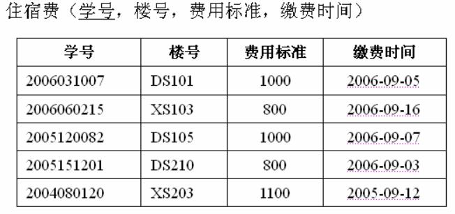 记录学生住宿收费情况的关系如图所示,这个关系中存在着传递依赖。