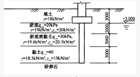 (单选题)已知饱和粉细砂层为液化土层,当地震作用按水平地震影响系数最大值的10%采用时,单桩竖向抗震承载力特征值R(kN)最接近下列()项。