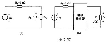 如图7-57所示,将放大倍数为1,输入电阻为1kΩ,,输出电阻为50Ω的射极输出器插接在信号源(uS,RS)与负载(RL)之间,形成图b电路,与图a电路相比,负载电压的有效值为()。