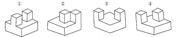 ①、②、③、④为四个多面体零件,问A、B、C、D四个多面体零件中的哪一个与①、②、③、④中的任一个都不能组合成长方体()。