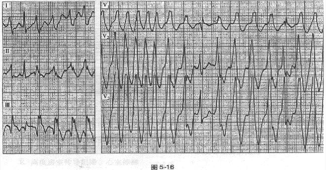 患者男性,49岁。因心悸、胸闷,晕厥1次就诊。心电图如图5-16所示,应考虑为()。