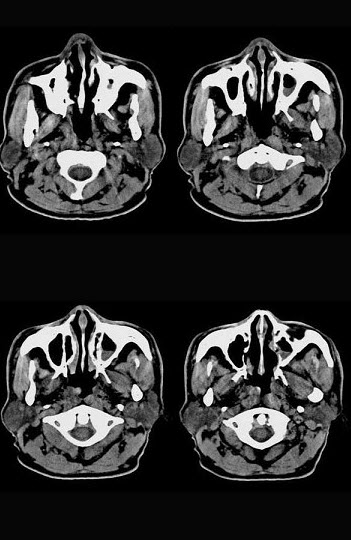 女,14岁,渐进性鼻塞2年余,右眼肿痛数月,CT如图所示,应诊断为()。