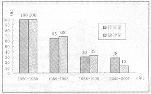 下图为1950-2007年黄河人海口附近的利津水文站径流量与输沙量变化图。读图推断该水文站河水含沙量变化的主要原因是()。