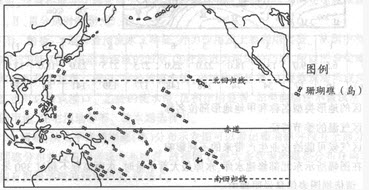 (单选题)据图中珊瑚礁(岛)分布状况判断,珊瑚适宜生长在()。