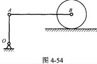 如图4-54所示,平面机构在图示位置时,杆AB水平而杆OA铅直,若B点的速度νB≠0,加速度aB=0。则此瞬时杆OA的角速度、角加速度分别为()。